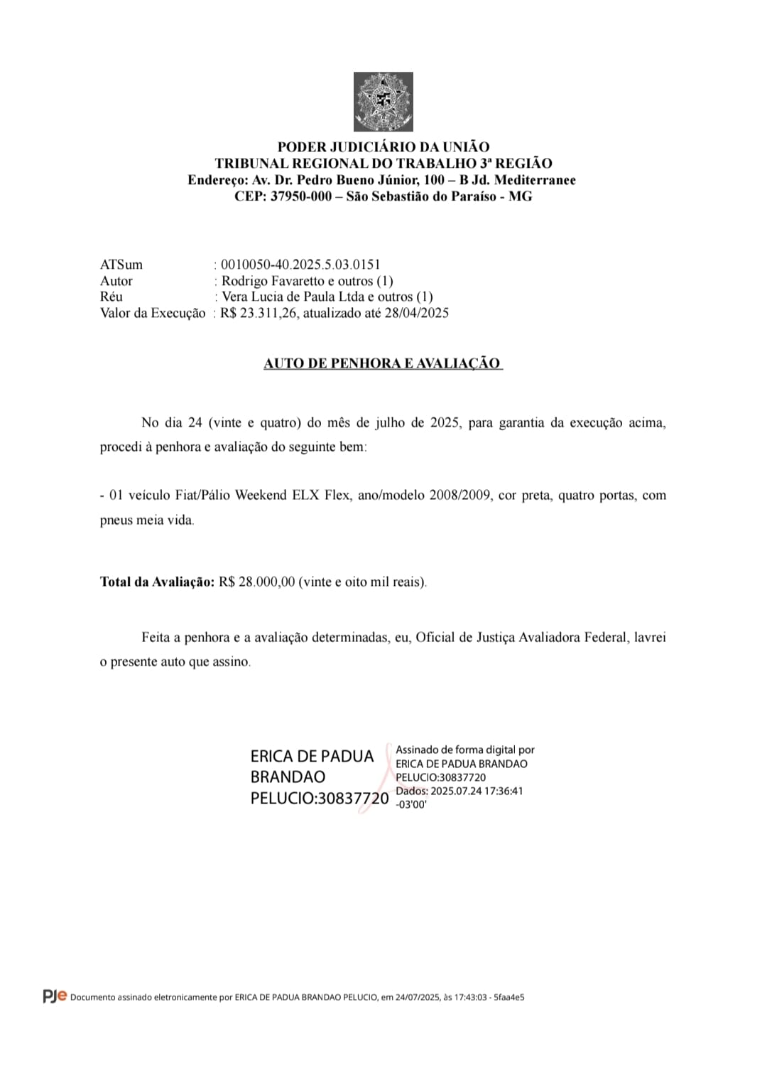 LEILÃO TRABALHISTA SÃO SEBASTIÃO DO PARAISO MG - VEICULO 60% DESCONTO