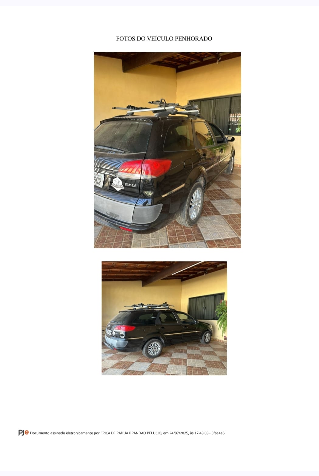 01 veículo Fiat/Pálio Weekend ELX Flex, ano/modelo 2008/2009, cor preta, quatro portas, com pneus meia vida, Placa do veículo: HGF-4602